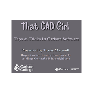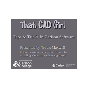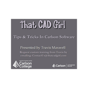 This webinar, hosted by That CAD Girl and presented by Travis Maxwell, covered advanced tips and tricks in Carlson Software, focusing on text management, drawing cleanup, workspace customization, and grading workflows. The session demonstrated practical commands and methods to improve efficiency and accuracy in daily CAD operations. Key Topics: Carlson Software text and MText management Drawing cleanup and Overkill command usage Creating and customizing workspaces and menus Swale design using 3D polylines and Pad Template tools Descriptions, transcripts and other details of this recording have been AI-generated and may contain errors. This session was presented by Travis Maxwell on 10/12/2023.