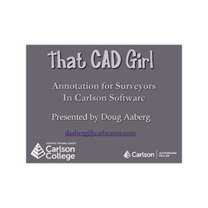 This webinar, Annotation for Surveyors, presented by Carlson Software’s Doug Oberg, provides a detailed walkthrough of annotation tools and best practices in Carlson CAD software. The session covers area labeling, bearings and distances, curve annotation, and automation techniques for efficient survey drafting. Key Topics: Annotation setup and configuration in Carlson Software Labeling areas, bearings, distances, and curves Using Auto Annotate and Lot Network tools for automation Descriptions, transcripts and other details of this recording have been AI-generated and may contain errors. This session was presented by Doug Aaberg on 03/24/2022.