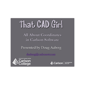 This webinar, hosted by That CAD Girl and presented by Carlson Software’s Doug Oberg, explores the fundamentals of coordinate systems used in surveying and CAD workflows. It covers ellipsoids, geoids, datums, scale factors, and Carlson tools for managing grid‑to‑ground conversions and projections. Key Topics: Coordinate system fundamentals (ellipsoid, geoid, state plane, grid vs. ground) Scale factors and combined scale factor calculations Carlson Software tools for coordinate management and projection setup Upcoming datum and unit changes (NAD 2022, low‑distortion projections, U.S. survey foot retirement) Practical applications for surveyors using GPS, RTK, and CAD integration Descriptions, transcripts and other details of this recording have been AI-generated and may contain errors. This session was presented by Doug Aaberg on 09/08/2022.