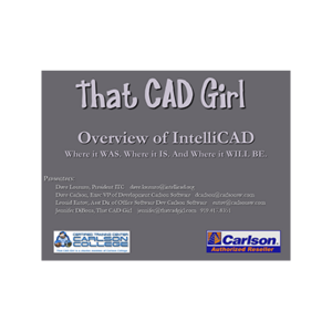 This webinar, hosted by That CAD Girl, provides an in-depth overview of IntelliCAD’s history, current capabilities, and future direction, featuring insights from the IntelliCAD Technology Consortium and Carlson Software. It explores how IntelliCAD serves as a cost-effective, DWG-compatible CAD platform supporting Carlson’s land development software suite. Key Topics: IntelliCAD’s origins and mission Comparison with AutoCAD and DWG compatibility Carlson Software’s integration with IntelliCAD New features in IntelliCAD 10 BIM, DGN, and material rendering capabilities Descriptions, transcripts and other details of this recording have been AI-generated and may contain errors. This session was presented by Dave Lorenzo, Dave Carlson, and Leonid Enrov, and Jennifer DiBona on 08/13/2020.