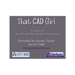 This virtual class, hosted by That CAD Girl and presented by Jeremy Taylor, provides a comprehensive overview of Carlson’s field software—SurvCE and SurvPC—and demonstrates practical workflows for survey data collection, cloud file sharing, and GPS/localization setup. The session also covers integration with Carlson Survey desktop software and best practices for efficient field-to-office coordination. Key Topics: Differences between SurvCE and SurvPC Using Carlson Cloud for file transfer and collaboration Job setup, configuration, and data management Integration with total stations and GPS rovers Working with CAD files and alignments in the field Ground vs. grid coordinate handling and localization Descriptions, transcripts and other details of this recording have been AI-generated and may contain errors. This session was presented by Jeremy Taylor on 05/17/2016.
